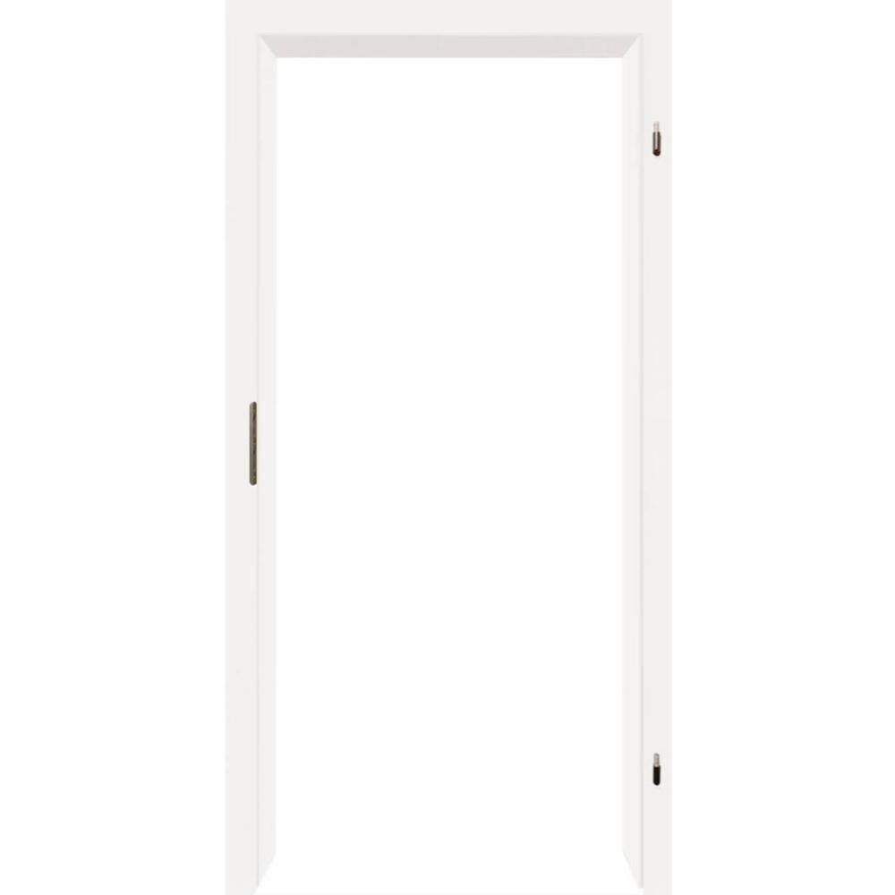 Holzumfassungszarge mit der Oberfläche CPL glatt weiß, Bekleidung 63 mm. Alle Angaben in mm.